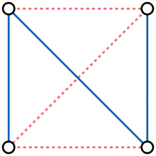 Un grafo autocomplementario de n vértices tiene exactamente la mitad de aristas que su grafo completo, en este caso, n(n − 1)/4 aristas, y (si tiene más de un vértice) debe tener diámetro 2 o 3.[1] Como n(n −1) debe ser divisible por 4, n debe ser congruente con 0 o 1 mod 4; por ejemplo, un grafo de 6 vértices no puede ser autocomplementario.
