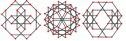 12 cuadrados 8 hexágonos regulares 6 octagramas regulares | |