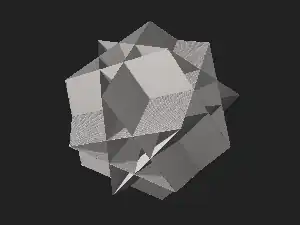 Dado que los hemipoliedros tienen caras que pasan por el centro del poliedro, sus duales tienen sus correspondientes vértices en el infinito; más concretamente, en el en el infinito del plano proyectivo real.[2] En los Modelos duales de Magnus Wenninger, se representan mediante prismas que se cruzan, cada uno de los cuales se extiende en ambas direcciones hasta el mismo vértice en el infinito, para mantener la simetría. En la práctica, los prismas del modelo se cortan en un punto determinado para hacer manejables las figuras. Wenninger sugirió que estas figuras son miembros de una nueva clase de figuras de estelación, a las que denominó "estelaciones hasta el infinito". Sin embargo, también sugirió que, en sentido estricto, no son poliedros porque su construcción no se ajusta a las definiciones habituales.