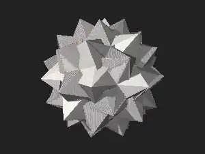 Las aristas y las caras triangulares también aparecen en el compuesto de veinte octaedros. Además, 20 de las caras triangulares se presentan en un enantiómero del compuesto de veinte tetrahemihexahedros, y las otras 60 caras triangulares forman parte del otro enantiómero.