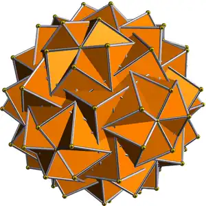 poliedro no convexo, poliedro de caras uniformes, poliedro dual y hexecontaedro | |