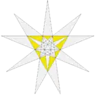 Es un icosaedro estrellado; modelo de Wenninger [W41]; la 16.ª de las 17 estelaciones del icosaedro; y la 7.ª de las 59 estelaciones de Coxeter. ![]() |