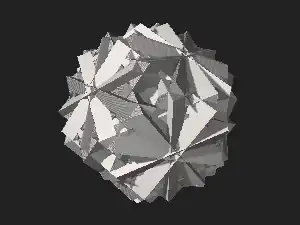 Los triángulos tienen un ángulo de , uno de y uno de . El ángulo diedro es igual a . Parte de cada uno de los triángulos se encuentra dentro de la figura, por lo que no son totalmente visibles en los modelos sólidos.