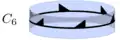 - Cn. Generado por un elemento también llamado Cn, que corresponde a una rotación de ángulo 2π/n alrededor del eje. Sus elementos son E (la identidad), Cn, Cn2, ..., Cnn−1, correspondientes a los ángulos de rotación 0, 2π/n, 4π/n, ..., 2(n − 1)π/n.