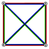 Desde el punto de vista de la teoría de grafos, su esqueleto es un tetraedro, una incrustación de K4 (el grafo completo con cuatro vértices) en un plano proyectivo.