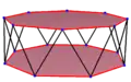 | Un hexadecágono oblicuo regular se ve como bordes en zigzag de un antiprisma octogonal, un antiprisma octagrámico y un antiprisma cruzado octagrámico | ||