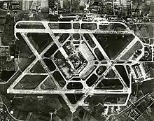 - Las principales pistas y calles de rodaje de Aeropuerto de Londres-Heathrow están dispuestas aproximadamente en forma de hexagrama.[24]