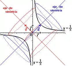 Para entenderlo mejor, se considera a continuación el caso de la hipérbola de referencia, cuya ecuación es
