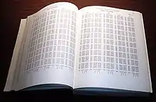 | 1792–94 | Gaspard de Prony Tables du Cadastre | 1–100.000 y 100.000–200.000 | 19 y 24, respectivamente | "Diecisiete folios enormes",[32] nunca publicados |