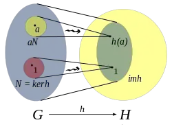 El núcleo de es un subgrupo normal de G. El núcleo es importante porque no sólo determina qué elementos tienen por imagen la identidad, sino también qué elementos tienen la misma imagen:[3]