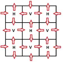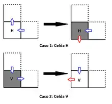 Los movimientos de la Hormiga de Langton se alternan entre verticales y horizontales, esto permite clasificar las celdas de la rejilla en dos conjuntos: uno es el de las celdas a las que se entra horizontalmente y se sale verticalmente (llamadas celdas H) y otro es el de las celdas a las que se entra verticalmente y se sale horizontalmente (llamadas celdas V).