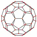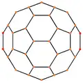 Tiene 12 caras regulares pentagonales, 20 caras regulares hexagonales, 60 vértices y 90 aristas.