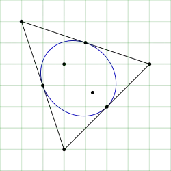 - Las longitudes de los semiejes mayor y menor para un triángulo con lados a, b, c son[1]
