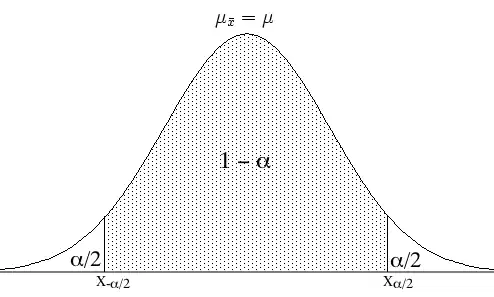 En esta distribución normal de medias se puede calcular el intervalo de confianza donde se encontrará la media poblacional si solo se conoce una media muestral (), con una confianza determinada. Habitualmente se manejan valores de confianza del 95 y del 99 por ciento. A este valor se le llamará (debido a que es el error que se cometerá, un término opuesto).