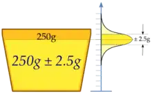 Una máquina llena tazas con helado, y se supone que está ajustada para verter la cantidad de 250 g. Como la máquina no puede llenar cada taza con exactamente 250 g, el contenido que se añade a cada taza individual presenta cierta variación y se le asigna una variable aleatoria X. Se asume que esta variación se ajusta a una distribución normal de alrededor de la cantidad promedio deseada de 250 g, con una desviación estándar de 2.5 g.