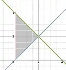 Ejemplo 1. Encuéntrese el centro de masa de una lámina con los bordes dados por las líneas y donde la densidad se da como .