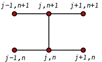 suponiendo que se usa una malla cuadrada en la que . Estas ecuaciones pueden ser simplificadas algo, ordenando sus términos y usando el número de Courant: