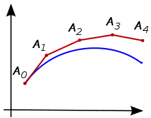 Como se muestra en la Gráfica B, básicamente el método se encarga de aproximar la curva por medio de una serie de segmentos en recta.