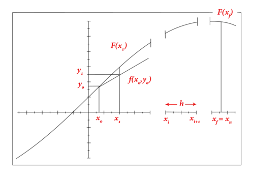 Considere el problema de calcular la pendiente de una curva desconocida que comienza en un punto dado y satisface una cierta ecuación diferencial dada. Se puede pensar en la ecuación diferencial como una fórmula que nos permite calcular la pendiente de la recta tangente a la curva en cualquier punto de la curva, una vez que el punto ha sido calculado.