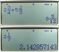 - 4 / (5 + 6): Una forma de hacer esto es calcular (5 + 6) / 4 primero y luego usar 1/x ,por lo que el cálculo realizado es 1/[(5 + 6)/4].