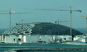 ![]() El Louvre Abu Dabi en construcción (2015). Su cúpula está construida con capas formadas por estrellas hechas con octágonos, triángulos y cuadrados |