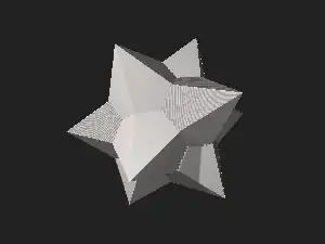 Tiene 30 caras rómbicas que se cruzan, que corresponden a las caras del triacontaedro rómbico convexo. Las diagonales en los rombos del sólido convexo tienen una razón de 1 a . El sólido se puede generar a partir del convexo estirando la diagonal más corta desde la longitud 1 hasta . Entonces, la razón de las diagonales del rombo en el sólido medio es de 1 a .