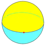 En la geometría esférica, un monógono puede construirse como un vértice en una circunferencia máxima, que forma un diedro {1,2}, con dos caras monogonales hemisféricas que comparten una arista de 360° y un vértice. Su dual, un hosoedro {2,1}, tiene dos vértices antipodales en los polos, una cara de luna de 360° y un borde (meridiano) entre los dos vértices.[1]
