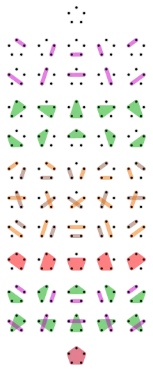 Puede explicarse observando que, a partir de una partición arbitraria de n + 1 elementos, la eliminación del conjunto que contiene el primer elemento deja una partición de un conjunto menor de k elementos para algún número k que puede ir de 0 a n. Hay opciones para los k elementos que quedan después de que se elimine un conjunto, y Bk opciones de cómo dividirlos.