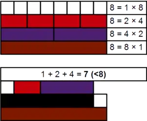 De manera más general, todas las potencias primas son deficientes[1][2] porque sus únicos divisores propios son , que suman , que es como mucho .