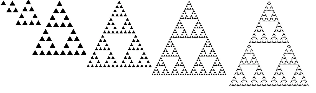El triángulo de Sierpinski tiene un vínculo inesperado con el triángulo de Pascal, si coloreas los números impares en el triángulo de Pascal, verás el triángulo de Sierpinski. que se visualiza en la figura a continuación: