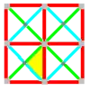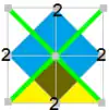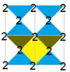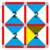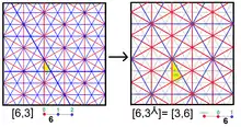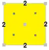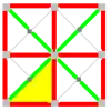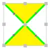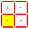 = A2×A2 = 2A2 se puede representar mediante [3]×[3] = [3]2 = [3,2,3 ]. A veces, las 2 ramas explícitas pueden incluirse con una etiqueta 2 o con una línea con un espacio: ![]()