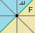 Johnson extiende el operador + para trabajar con un marcador de posición de nodos 1+, lo que elimina espejos, duplicando el tamaño del dominio fundamental y cortando el orden del grupo a la mitad.[1] En general, esta operación solo se aplica a espejos individuales delimitados por ramas de orden par. El 1 representa un espejo, por lo que [2p] puede verse como [2p,1], [1,2p] o [1,2p,1], como el diagrama ![]()