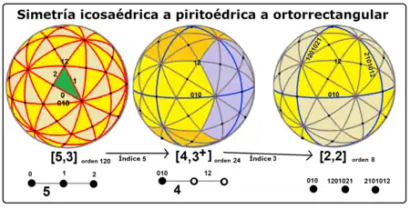 , produciendo generadores piritoédricos 0,12, una reflexión y rotación triple. Y la simetría tetraédrica quiral se puede escribir como ![]()