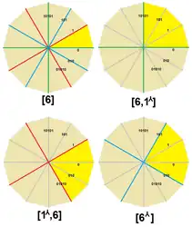 | [2p] | 4p | {0,1} | [1+,2p]= [p] | 2p | {101,1} | Semi subgrupos | ||