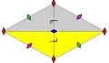 se puede representar mediante la notación de Coxeter [(3,3,(3),3,3)], con paréntesis anidados/superpuestos que muestran dos bucles adyacentes [(3,3,3)], y también se representa de forma más compacta como [3[ ]×[ ]], que representa el diagrama de Coxeter de la simetría rómbica. El diagrama de gráfico completo paracompacto