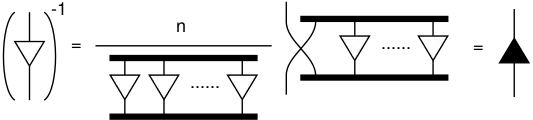 Las constantes de estructura () de un álgebra de Lie se representan por pequeños triángulos con una línea vertical que sale del vértices superior dos líneas de los vértices inferiores hacia abajo.