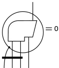 La derivada covariante () se representa por un círculo alrededor del tensor(es) que se quieren derivar y una línea desde el círculo descendente que representa el índice inferior de la derivada.