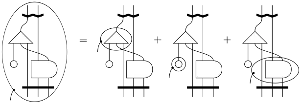 En el lenguaje del álgebra multilineal, cada forma representa una función multilineal. Las líneas que salen de estas formas representan las entradas y salidas de la función. De esta forma es posible representar la composición de funciones enlazando varias figuras entre sí.