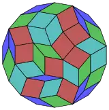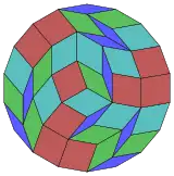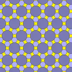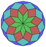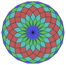Un triángulo equilátero, y un nonágono y un octadecágono regulares, pueden rodear completamente un punto en el plano, una de las 17 combinaciones diferentes de polígonos regulares con esta propiedad.[4] Sin embargo, este patrón no se puede extender a un teselado arquimediano del plano: debido a que el triángulo y el nonágono tienen ambos un número impar de lados, ninguno de ellos puede estar completamente rodeado por un anillo alternando los otros dos tipos de polígono.
