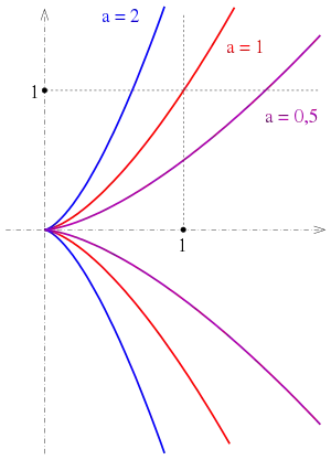 lo que implica que cada punto real satisface x ≥ 0. Su exponente explica la denominación de parábola semicúbica (una parábola puede describirse mediante la ecuación y= ax2).