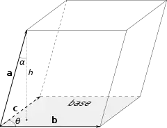 En general, si , y son vectores que definen aristas concurrentes en un vértice, el volumen del paralelepípedo es igual al valor absoluto del producto mixto: