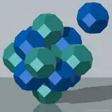 Un plesioedro es una clase más amplia de poliedros tridimensionales que llenan el espacio, formados a partir del diagrama de Voronois de conjuntos periódicos de puntos.[7] Como demostró Boris Delaunay en 1929,[11] todo paraleleedro puede convertirse en un plesioedro mediante una transformación afín,[1] pero esto queda abierto en dimensiones superiores,[2] y en tres dimensiones también existen otros plesioedros que no son paraleleedros. Las tilings del espacio por plesiohedra tienen simetrías que toman cualquier célula a cualquier otra célula, pero a diferencia de los paraleloedros, estas simetrías pueden implicar rotaciones, no sólo translaciones.[7]