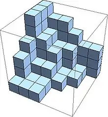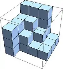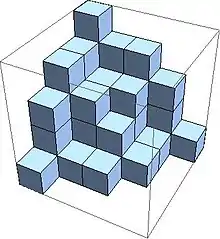 Además solo un número finito de los son distintos de cero. Una partición plana de un entero puede representarse gráficamente mediante una pila de cubos unitarios sobre el punto (i, j) en el plano gausiano, resultando un sólido tridimensional como el mostrado en la imagen.