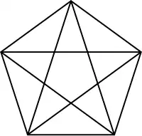 En geometría, se denomina pentágono (del griego πεντάγωνον, de πέντε pénte "cinco" y γωνία gōnía "ángulo") a un polígono de cinco lados y cinco vértices. La suma de los ángulos internos de un simple pentágono es 540°.