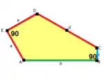 Un cíclico pentágono es aquel en el que una circunferencia, llamada circunscrita, pasa por los cinco vértices. El pentágono regular es un ejemplo de pentágono cíclico. El área de un pentágono cíclico, regular o no, puede expresarse como la cuarta parte de la raíz cuadrada de una de las raíces de una ecuación séptica cuyos coeficientes son funciones de los lados del pentágono.[12][13][14]