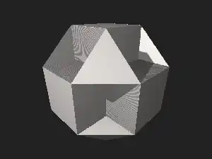- (Richter,) Debe tenerse en cuenta que cada cara del poliedro consta de múltiples caras en el teselado, de ahí la descripción como un "coloreado": dos caras triangulares constituyen una cara cuadrada y así sucesivamente, según esta imagen explicativa.