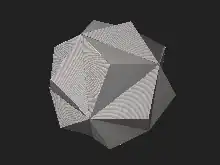 | Elementos (Como un poliedro estrellado) | F= 20, E= 60 V= 32 (χ= −8) | ||||||