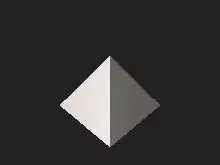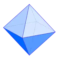| Un octaedro regular se puede considerar una bipirámide cuadrada que se compone de dos Johnson pirámides cuadradas conectadas base a base. | El tetraquis hexaedro se puede considerar un cubo a cada una de cuyas caras se añaden pirámides cuadradas chatas. |