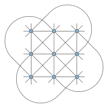 - Hay k clases paralelas de líneas. Cada punto se encuentra exactamente en las líneas k, una de cada clase paralela.