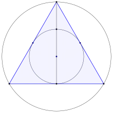 Cada triángulo es bicéntrico.[1] En un triángulo, los radios r y R de su circunferencia inscrita y de su circunferencia circunscrita respectivamente están relacionados por la ecuación